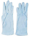 Pětiprsté rukavice šité z jemného běleného bavlněného úpletu,