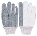 Pětiprsté šité rukavice z režné bavlny s terčíky PVC na dlani